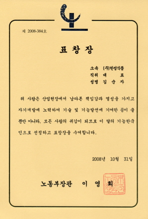은탑산업훈장 수훈 (2008년 5월 19일)