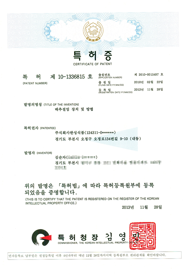 | 22 | 2013. 11. 28 | 10-1336815 | 배추절임장치 및 방법 |